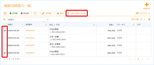 概算見積書作成後に変更された得意先(宛先)・自社情報・自由記入欄の情報は、1度保存された概算見積書には反映されません。